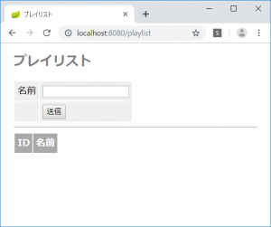 <th>ID</th><th>タイトル</th><th>アーティスト</th><th>編集</th><th>削除</th>